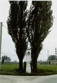 Nell'intricato reticolo delle strade padane, dove la topografia dei luoghi non risulta segnata da indizi naturali quali le cime dei monti, i passi o i crinali, si esalta il valore simbolico dei pilastrino mariano posto a segnare un crocevia o a sancire un confine. In questo caso l'aspetto simbolico sopravanza l'immagine votiva stessa perdilatarsi nella dimensione territoriale protetta; il pilastro e' di dimensioni piu'elevate e ben riconoscibile da considerevole distanza mentre la nicchia risulta pressoche' inaccessibile per quelle operazioni devozionali quali pulitura, disposizione di fiori o contemplazione dell'immagine.