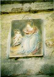 | Via San Martino: ceramica policroma posta su pilastro d'ingresso raffigurante la Madonna della Ghiara | Oratorio di Santa Caterina sulla strada per Fosdondo: all'interno sono collocate cartoline ex voto |