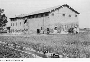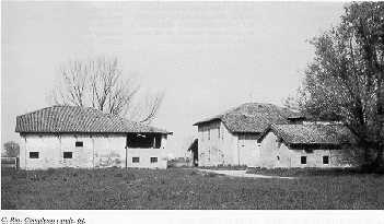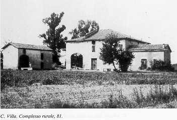 81 Mappa del territorio C. VILLA alt. m. - IGM F 74 II NO Edificio rurale a corpi giustapposti. La costruzione comprende un volume principale compatto a pianta quadrangolare con porta morta a sesto ribassato ; la copertura č a quattro falde con cresta frangifuoco. Il civile č ubicato a levante. L'edificio č affincato da un basso corpo di un modesto caseificio. Di fronte alla C. Villa sul lato di levante della strada osservabile un edificio rurale ad elementi giustapposti in linea con porta morta a sesto ribassato, orientato in direzione est-ovest; la copertura a quattro falde a colmo costante . Il civile situato a ponente, ha luci regolari e simmetricamente distribuite: a questo č congiunto un basso servizio con tetto a tre falde. | ![]() |