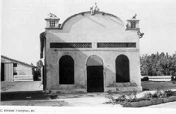 80 Mappa del territorio C. VEZZANI alt. m. - IGM F 74 II NO Interessante caseificio a pianta rettangolare. Il prospetto principale ha copertura ad attico mistilineo recante ai vertici laterali le figure a tutto tondo di due suini ed al centro quella di una donna seduta alla sommitą del fastigio; l'ingresso e le finestrature sono archivoltate. Ghiere a traforo in laterizio formano fascie decorative sui prospetti. | ![]() |