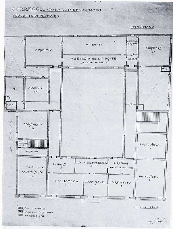 Il restauro del Palazzo dei Principi(protrattosi, con interventi successivi, dal 1919 al 1927) fu di per sé un fatto positivo; la sua parziale destinazione a fini culturali consentì poi, anche se in modi inadeguati, di trovare una sede più confacente al museo, alla Biblioteca e agli Archivi.