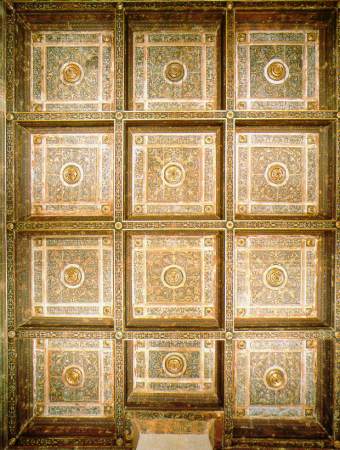 Fregio e soffitto a cassettoni Affresco e carta incollata su legno Datato 1508 (ill. a p. 17) |