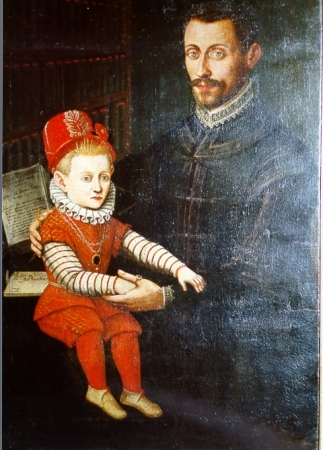 Paolo Grassi, correggese, (1562-1622) fu medico di corte prima a Novellara, quindi a Correggio, dove ricopri anche la carica di segretario del principe Siro. Tra le sue opere ricordiamo De lolio tractatus, Mortis repentinae examen, Ragionamenti domestici intorno alla natura dei sogni. La figura del bambino, probabilmente figlio del medico Grassi, è rimarchevole per la tipologia dell'abito. [VP] Bibliografia: Bertolini 1930, p. 13; Finzi 1968, p. 286.