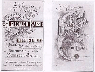 Il 1898 segna una svolta significando idealmente la fine di un percorso in ascesa per Gildaldo Bassi, anche se i fatti accaduti in quell'anno, indicherebbero il contrario; assistiamo infatti a un ulteriore impulso dell'attività: l'apertura di un grande atelier fotografico a Reggio Emilia in piazza Cavour n. 3 che si andava così ad aggiungere a quello correggese. E' plausibile giustificare un investimento simile con motivazioni di varia natura; in primo luogo, visto il grande fermento politico di quegli anni, questo rappresentava una scelta di campo precisa. Reggio Emilia infatti significava una maggior partecipazione alla vita politica e una maggior vicinanza al leader del movimento Prampolini' a cui scattò alcuni ritratti singoli o con la famiglia in quadri "en plein air". Una scelta così importante non può non implicare anche precisi intenti di carattere economico-commerciale' uno studio nell'importante "piazza" di Reggio è tutt'altra cosa rispetto a un atelier di provincia. Significativo in questo senso, l'utilizzo di "cartoncini" per piccoli ritratti con il marchio "Fotografia civile e militare", da cui traspare chiaro l'intento di cercare di conquistare la più ampia clientela' in questo caso specifico' i molti militari della vicina Caserma Zucchi.