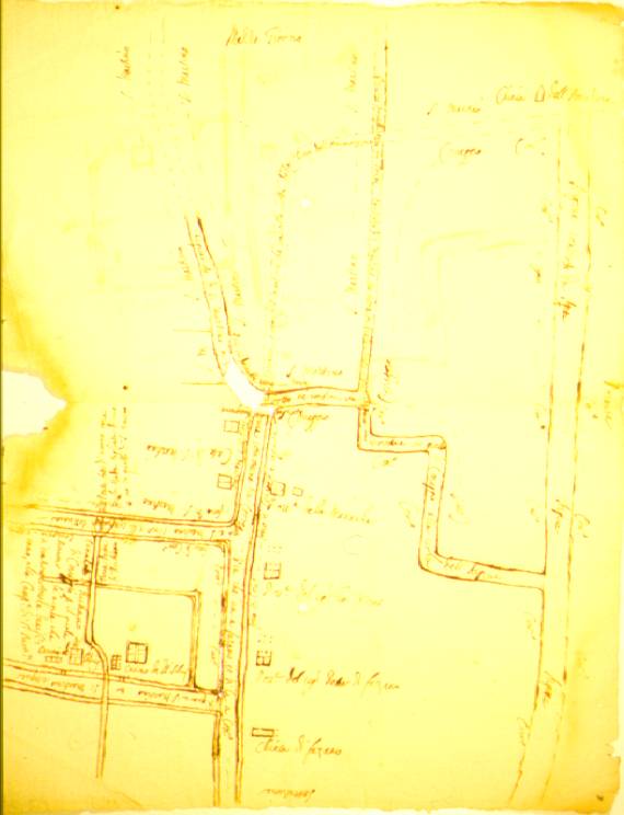 Evidenziazione dei territori di S. Martino e di Correggio, idrografia Argine, carraia che va alla chiesa dell'Ammozzone (Lemizzone)