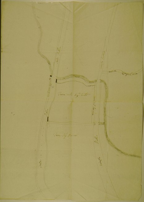 Riporta due strade parallele che delimitano due proprieta' ed un corso d'acqua, oltre ad una "carata zampa l'occa". Vedi AC I/1