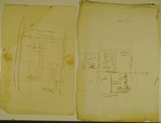 Indicazione di "strada di Mandrio ponte di legno" e delimitazione delle proprieta' con indicazione dei proprietari presenti e precedenti.