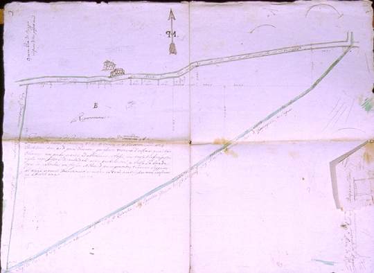 Carta riportante "Fossa Marza", "Strada da Bondione a Parrocchiale di Rio"