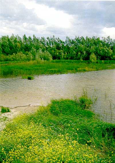 Il lato Ovest della cava, contraddistinto da vegetazione legnosa ad alto fusto, presenta i tre piani di vegetazione (arboreo, arbustivo, erbaceo) ormai definiti. Gli alberi sono: Pioppi ibridi residuo di piantumazioni a scopo produttivo, Salici bianchi e, soprattutto, Olmo campestre spontaneo che, in questa zona, ha carattere infestante per l'abbondante disseminazione. Gli arbusti sono delle stesse varietà scelte per le nuove piantumazioni e tra le erbe sono da segnalare, oltre a un'inconsueta presenza di Tulipano silvestre, le piante tipiche delle nostre zone umide: Tifa, Canna palustre, Piantaggine d'acqua, Giunco, Iris, ecc.