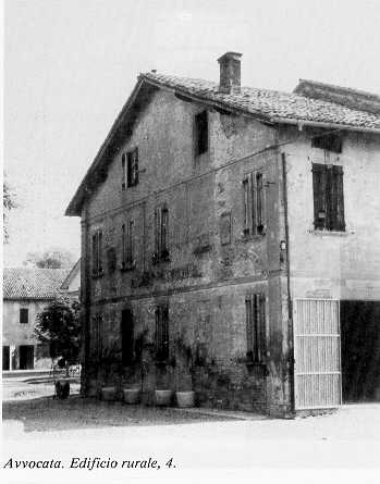 5 Mappa del territorio AVVOCATA alt. m. - IGM F 74 II SO Edificio rurale a corpi congiunti con porta morta a sesto ribsassato e copertura a due falde con cresta frangifuoco. Il civile su tre livelli ha luci regolari e simmetricamente distribute. Nel prospetto ad est si trovano oltre alla denominazione del podere, alcune formelle in cotto di cui una porta il millesimo "MCMXXVI". | ![]() |