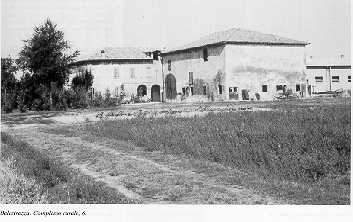 6 Mappa del territorio BALESTRAZZA alt. m. - IGM F 74 II NO Notevole complesso rurale ad elementi separti. Il rustico sviluppa una pianta quadrangolare con coperto a quattro falde ed ampio portale di accesso archivoltato in angolo al prospetto di meriggio. Il civile evidenzia un volume ad ampia pianta quadrangolare articolata su due livelli con copertura a quattro falde. Il prospetto frontale evidenzia un portico a luci archivoltate ed una sopraelevazione centrale ad abbaino. Le luci sono regolari e simmetricamente distribuite. | ![]() |