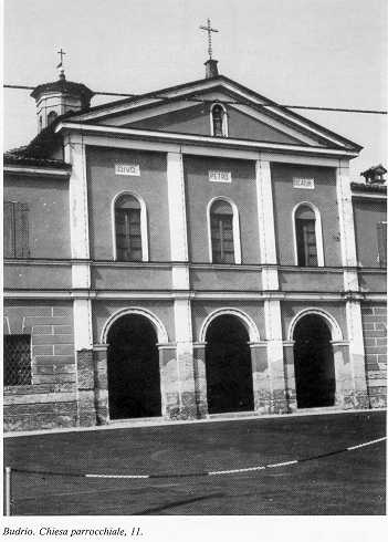 11 Mappa del territorio BUDRIO alt. m. 35 IGM F 74 II NO In località indeterminata della villa si sono rinvenute tombe romane isolate di inumati(1). La villa di Budrio nominata in una carta del Monastero di S. Prospero di Reggio del 935. In un'altra donazione del 1006 compare il castello di Budrio; successivamente è ricordato nel 1092 e 1172 (2). Budrio faceva parte del distretto di Reggio alla cui Comunità rimase soggetto fino alla fine del sec. XVIII. Con la Restaurazione fu aggregato a Correggio. Secondo la bolla di Innocenzo II la chiesa di S. Pietro dovrebbe figurare già presente nell'anno 1140. In origine essa sorgeva piu' ad est rispetto alla presente. Essa è comunque compresa nel documento delle Decime del 1302; in seguito non fu soggetta ad alcuna Pieve. La visita del Vescovo Picenardi del 1704 riporta la chiesa a navata unica con tre altari. Fu poi riedificata fra il 1743 ed il 1764 sotto la direzione dell'architetto Cattania di Correggio o secondo piu' recenti attribuzioni su disegno dell'architetto Francesco Cipriano Forti. In seguito vennero eseguiti restauri e nel 1868 realizzato il nuovo campanile. Ha forma a croce latina (3). La facciata è ripartita da paraste, conclusa da un frontespizio triangolare con nicchia al centro recante una immagine votiva a tutto tondo. La parte inferiore è formata da un portico a tre arcate a tutto sesto cui sono sovrapposte al centro del prospetto tre luci voltate. Il campanile-aggiunto nel 1868- presenta una cella a bifore con tamburo e copertura cuspidata. A fronte della chiesa, in angolo alla via Fossa Ronchi, visibile un edificio rurale a corpi giustapposti, orientato in direzione est-ovest, con porta morta a sesto ribassato e copertura a due falde a colmi differenziati. Il civile, situato a levante, ha luci regolari e simmetricamente distribuite. Il rustico presenta nel fronte sud un portico tamponato a tre luci a tutto sesto. (1)DEGANI 1974, 27; . (2)TORELLI 1921, n 58-98; Evoluzione 1983, 138; BERTOLANI 1971, 195; (3)SCURANI, II, 757-760. | ![]() ![]() |