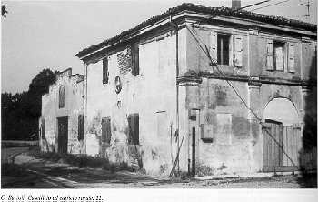 30 Mappa del territorio C. CATELLANI alt. m. - IGM F 74 II NO Complesso rurale a corpi separati. Il civile sviluppa una pianta quadrata su due livelli conclusi da una copertura a padiglione. Sul lato est sono congiunti dei corpi di servizio. A ponente un edificio destinato all'abitazione con copertura a due falde a colmo costante. In angolo alla via Ronchi è visibile un nucleo rurale costituito da due edifici. Il civile sviluppa pianta quadrangolare su due piani con copertura a padiglione; le luci sono regolari e simmetricamente distribuite. Il rustico con copertura a quattro falde mostra un portico architravato sul fronte sud. | ![]() |
