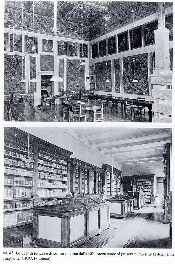 In quegli anni venne trasportata nelle stesse sale anche la parte storica dell'Archivio Comunale 41 o, meglio, la parte dal 1640 in poi, perché i documenti più antichi furono "inspiegabilmente e dissennatamente mandati al macero dopo la Liberazione ". 42