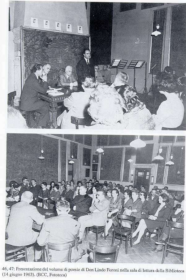 In questo modo, però, la Biblioteca non era in grado di assolvere "a uno dei suoi compiti principali: portare a conoscenza del pubblico ciò che di nuovo si produce nel campo della cultura ". Ma c'era un'altra mancanza altrettanto grave: dal 1953, fatta eccezione per una commemorazione di Don Giuseppe Andreoli, non venivano più organizzate conferenze.