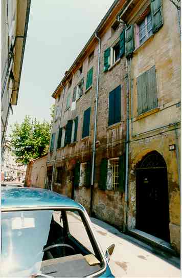 ISOLATO: 22 EDIFICIO: 1 FACCIATA PROSPICIENTE VIA: Azzo da Correggio PARAMENTO: 3. paramento intonacato e tinteggiato COMP. FUNZIONALI E DECORATIVE: 1. grate sovraporta DECOR. ARCHITETTONICHE: 1. cornicione 9. zoccolo 2. cornici marcapiano Rullino n.: 11 Fotogramma n.: 34 Data dello scatto: 13/06/90 Torna alla carta del Centro Storico Vai alla scheda edificio |