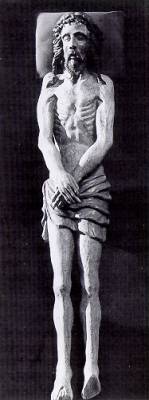 Si tratta di un'opera dai caratteri ancora marcatamente gotici, come rivelano la tipologia del volto di Cristo, fortemente allungato, e l'accentuata magrezza del corpo, con le costole poste in rilievo. La forte stilizzazione dell'opera, da cui si esprime una certa qual rustica potenza, induce a supporre che l'autore possa essere uno scultore dell'Italia del nord operante verso la metà e oltre del XV secolo, e fortemente influenzato dai modi della scultura in legno austriaca o friulana. Ben difficilmente in origine la statua doveva presentarsi isolata: è assai probabile che fosse collocata al centro di un gruppo raffigurante un Compianto su Cristo morto. I Mortori in terracotta, che fra la fine del Quattrocento e il primo Cinquecento costituiranno la manifestazione più importante della plastica emiliana, trovano (lei precedenti sia nella scultura in pietra (Verona, chiesa di San Fermo, metà del XIV secolo) che in legno (Bologna, chiesa di Santa Maria delle Grazie alla Cavalleria, inizio del XV secolo). La posizione del Cristo di Correggio, disteso orizzontalmente con le mani incrociate sul bacino e i piedi leggermente divaricati, come nella maggior parte dei "Compianti" padani, induce a ritenere che la statua sia l'unica superstite di un insieme di sette-otto sculture in legno raffiguranti i dolenti (la Madonna, le Pie Donne, Giovanni Evangelista, Giuseppe d'Arimatea, Nicodemo) in atto di lamentarsi intorno al corpo del Salvatore. [GPL] Bibliografia: Bonsanti 1978, p. 77.