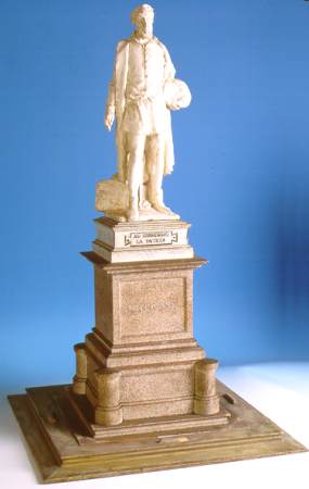 Si tratta del bozzetto eseguito in preparazione del monumento eretto in piazza San Quirino a Correggio. L'opera definitiva, inaugurata il 17 ottobre 1880, presenta la statua del pittore in marmo di Carrara su un basamento in granito rosa di Baveno. I tratti del volto del Correggio sono quelli idealizzati dalla tradizione romantica, e l'abbigliamento è genericamente "all'antica", senza riscontri con la moda della prima metà del Cinquecento. [VPI Bibliografia: inedito.