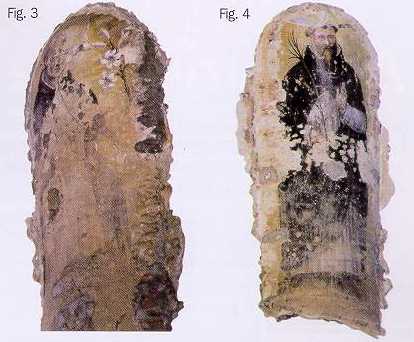 Demolite in sette delle otto nicchie le murature, sono venute alla luce altrettante figure di grandi dimensioni, superiori al naturale, rappresentanti santi e monaci.