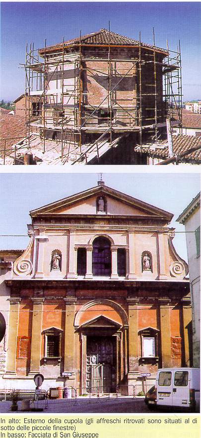 Otto santi affrescati nelle nicchie del tamburo della volta. Questo è lo spettacolo, davvero inusuale, che si è presentato agli occhi dell'Ing. Dazzi e degli operai che svolgono i lavori di consolidamento statico della chiesa di S. Giuseppe.