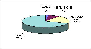 Poche sono le statistiche a livello nazionale che censiscono questo tipo di incidente e le relative cause ed effetti. Il rapporto tra i tre eventi più frequenti, e cioè rilascio, esplosione e incendio è riportato nel grafico a fianco.