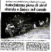 Il primo, occorso nel 1994, ha riguardato un autocisterna carica di alcool etilico, proveniente dalla Francia e diretta ad un deposito locale, che è scivolata rovesciandosi in un canale all'altezza di una frazione abitata, nelle ore serali. Dei 24 mila litri trasportati, 2600 sono finiti nelle acque del canale, fortunatamente senza pesanti conseguenze per la vita acquatica grazie sia alla diluizione garantita dalle piogge del giorno prima che alla facile biodegradabilità dell'alcool. L'intervento, che è consistito in un travaso dalla cisterna incidentata ad un'altra resa disponibile dallo speditore, è state effettuato invece in condizioni di estrema prudenza e con grande professionalità con il supporto di un'unità specializzata dei Vigili del Fuoco di Ravenna richiamata sul luogo a causa del forte rischio di esplosione e incendio.