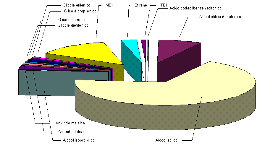 La tabella mostra le sostanze che rappresentano i maggiori volumi di trasportato:
