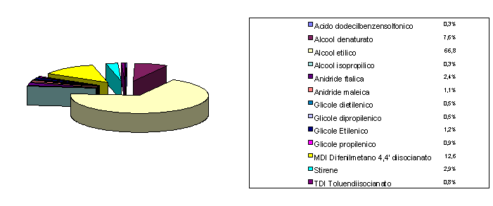 Andando quindi ad esaminare l'incidenza delle singole sostanze per il numero di mezzi che transitano annualmente sul territorio comunale si riceve questa informazione: