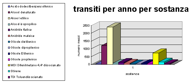 - delle sostanze esaminate solo tre sono significative sia in termini di tonnellate che di numero di mezzi coinvolti nel loro trasporto;